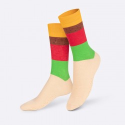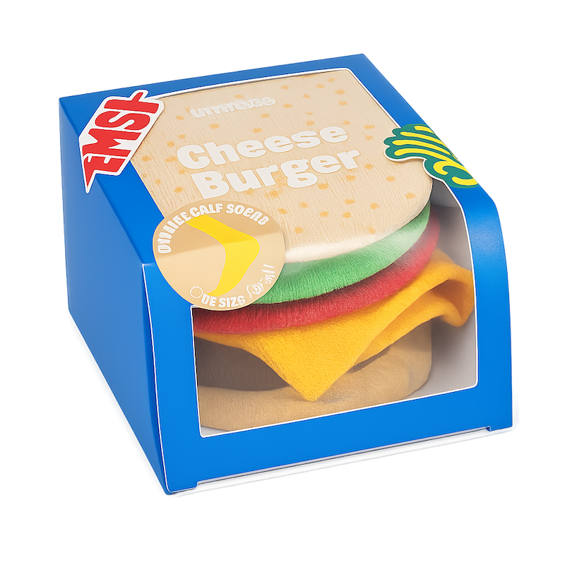 Les chaussettes Cheeseburger Eat My Socks sont l’accessoire parfait pour ajouter une touche fun et décalée à votre tenue. Présentées dans un emballage réaliste en forme de burger, elles surprennent dès le premier regard et font toujours leur effet.