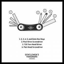 Compact et robuste, le multi-outil vélo Hex Key Gentlemen’s Hardware est conçu pour vous accompagner partout. Grâce à son format de poche, il se glisse facilement dans un sac ou une sacoche pour faire face aux imprévus.