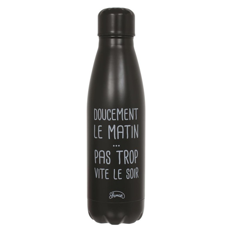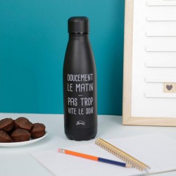 La gourde “Doucement le matin” est parfaite pour celles et ceux qui ont besoin d’un réveil en douceur. Avec son message plein d’humour, elle accompagne vos journées avec légèreté et bonne humeur.