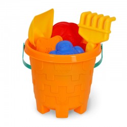 Pelle, moules et seau : ce set comprend tous les jouets de plage indispensables à la création de châteaux de rêve, de gâteaux un peu grumeleux et de bassins d'eau salée sur le rivage.