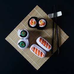 Le coffret de chaussettes sushi (3 paires) est un cadeau original qui surprend à coup sûr. Présentées comme de véritables makis et nigiris, ces chaussettes imitent à la perfection un plateau de sushi.