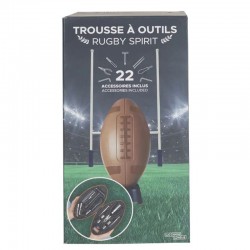 Plongez dans l'univers du rugby avec la trousse à outils en forme de ballon de rugby.