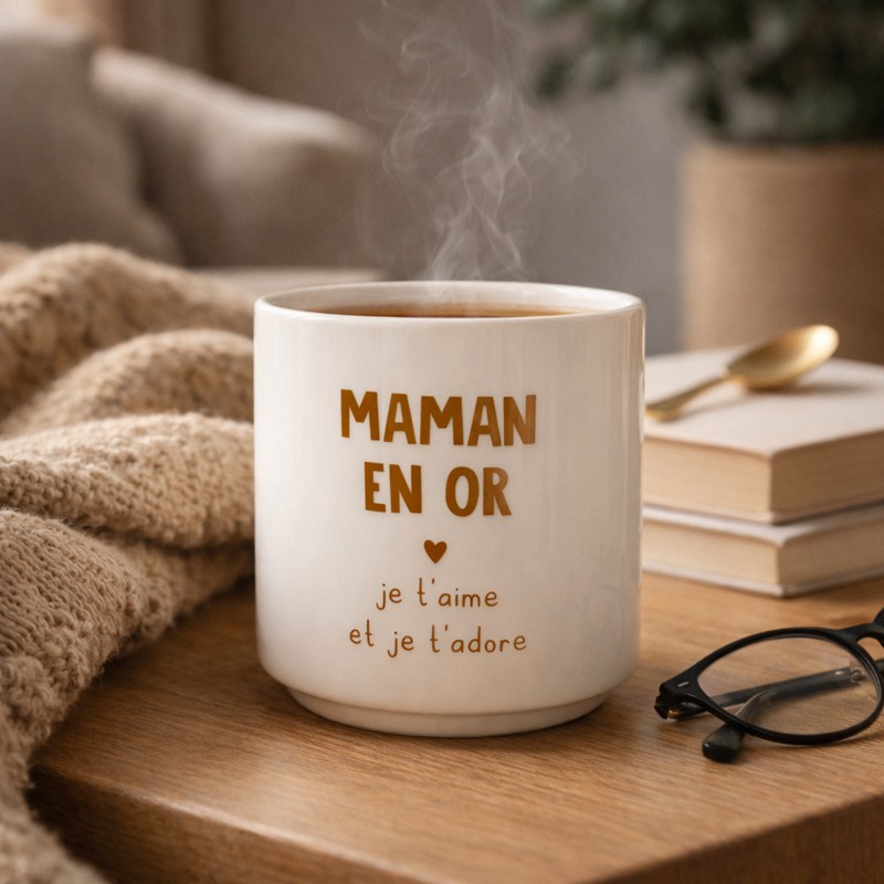Vous cherchez le cadeau parfait pour montrer à votre maman combien elle est précieuse ? Le mug "Maman en or" est une attention tendre et pleine d'amour, idéale pour accompagner ses pauses café ou thé avec douceur.