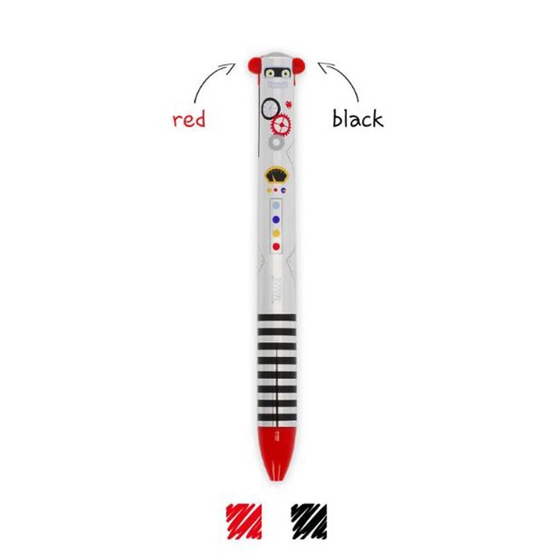 Le stylo à bille bicolore Click & Clack Robot de Legami allie praticité et design original. Grâce à son système ingénieux, changez facilement de couleur en un clic pour écrire, corriger ou organiser vos notes.