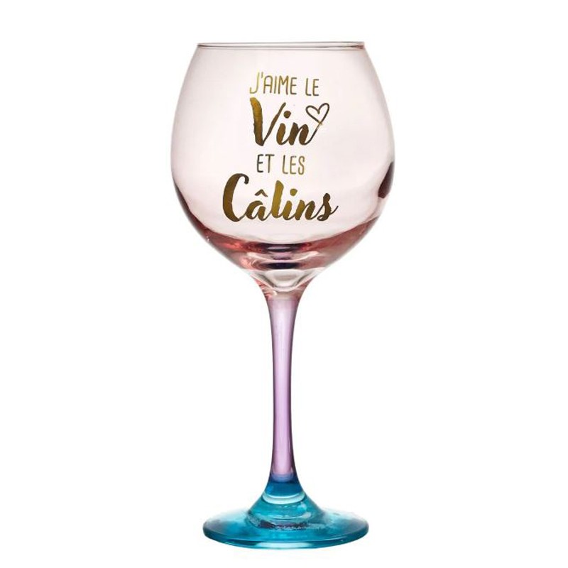 Le verre à vin “J’aime le vin et les câlins” Les Vilaines Filles annonce la couleur : ici, on aime les moments doux… mais jamais sans un petit verre.