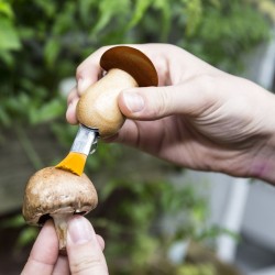 Ce petit outil pratique comprend une lame pour couper et une brosse pour nettoyer les champignons.