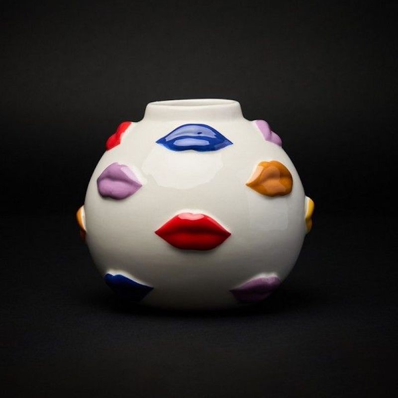 Véritable clin d'oeil pop et sensuel, ce vase e céramique affiche de pulpeuses lèvres en relief qui semblent prêtes à souffler un baiser à votre intérieur.