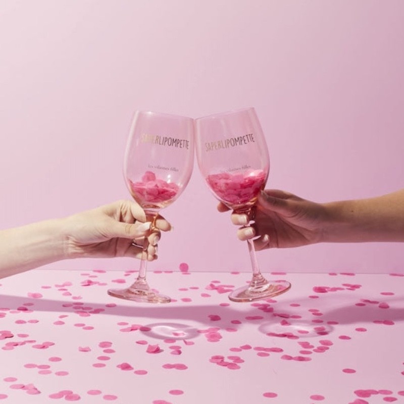 Le coffret de 2 verres à vin "Saperlipompette" des Vilaines Filles, c'est l'accessoire parfait pour trinquer avec humour et panache !
