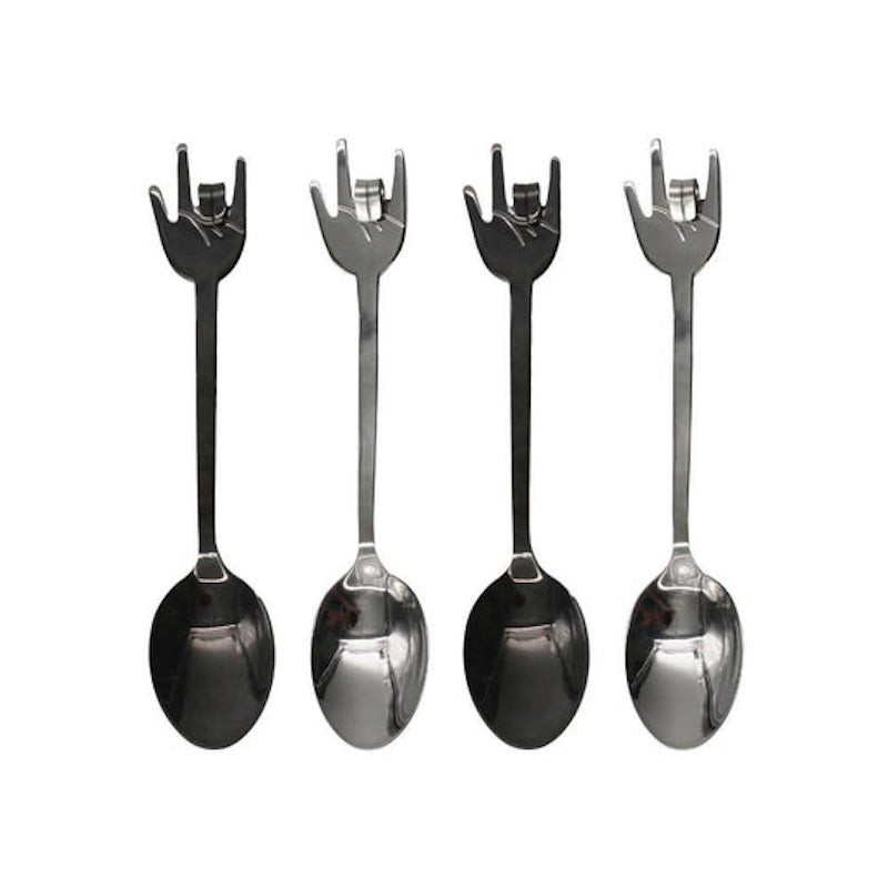 Apportez une touche rock'n'roll à vos pauses café ou thé avec le set de 4 cuillères Rock Hand de Winkee !