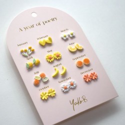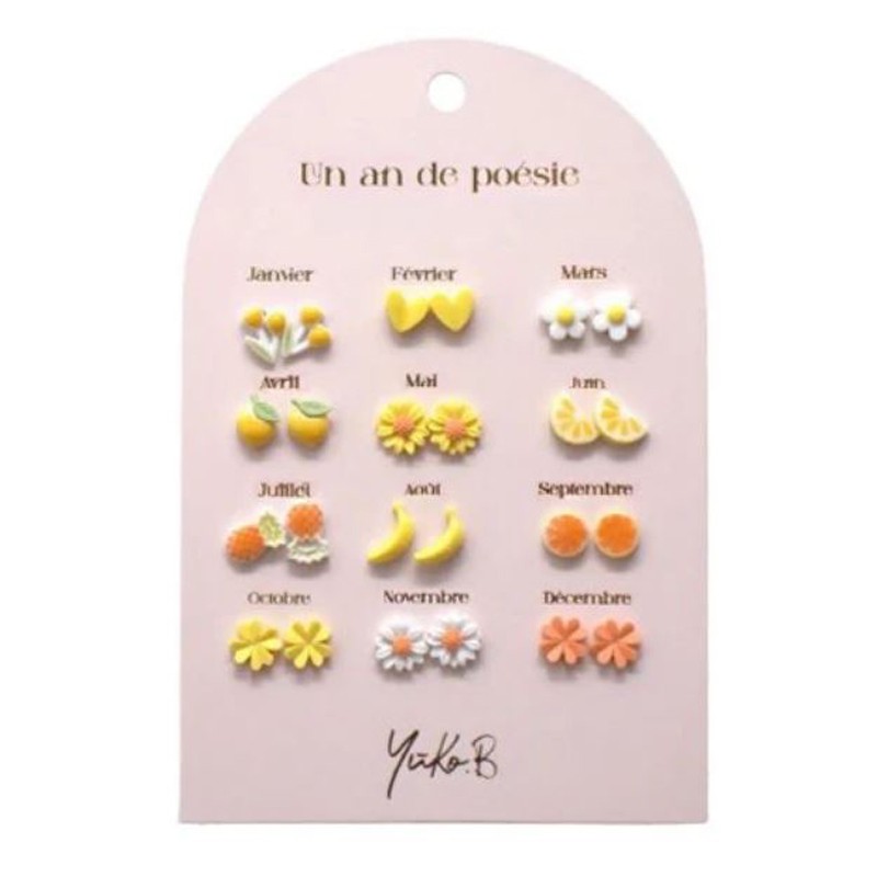 Laissez-vous emporter par la douceur et la couleur avec "Un an de poésie", un set signé Yuko B, réunissant 12 paires de boucles d'oreilles en céramique. Une pour chaque mois de l'année.