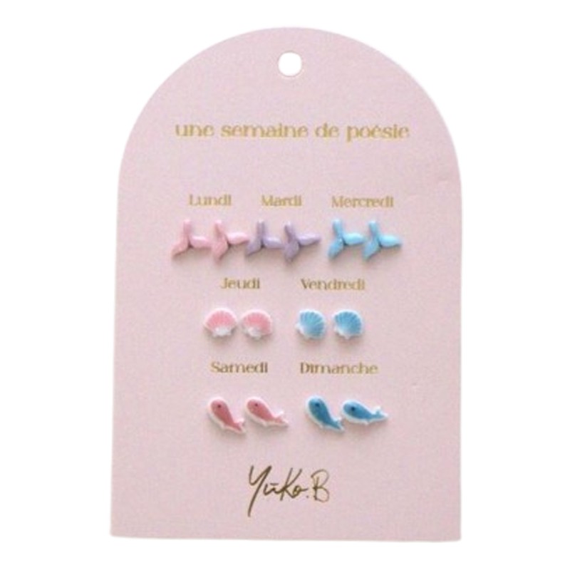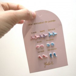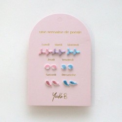 Laissez-vous emporter par la douceur et la couleur avec "Une semaine de poésie", un set signé Yuko B, réunissant 7 paires de boucles d'oreilles en céramique. Une pour chaque jour de la semaine.