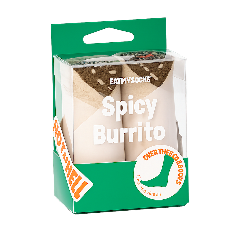 Les chaussettes Spicy Burrito Eat My Socks sont l’accessoire parfait pour surprendre avec humour et originalité. Présentées dans un emballage trompe-l’œil en forme de burrito, elles créent un effet waouh dès l’ouverture.