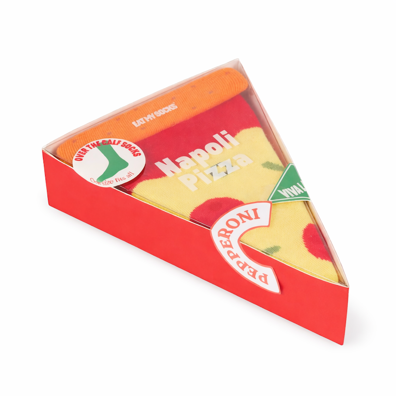 Les chaussettes Pizza Eat My Socks sont l’accessoire parfait pour allier humour et originalité. Présentées dans un emballage réaliste en forme de part de pizza, elles surprennent dès le premier regard et font toujours leur petit effet.