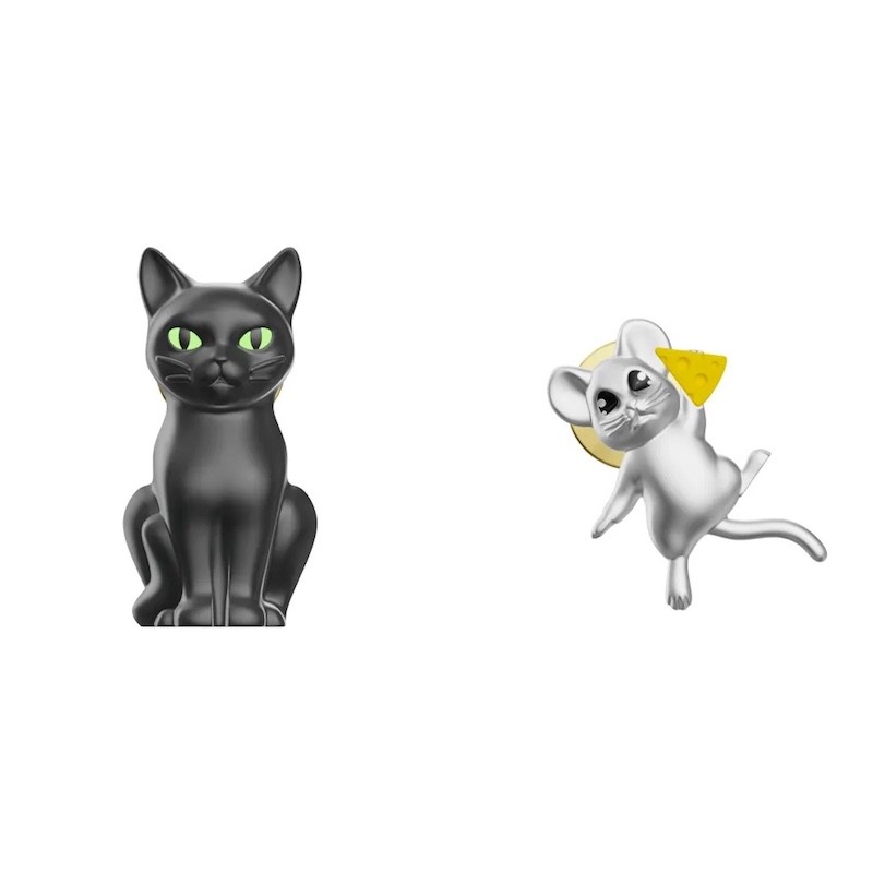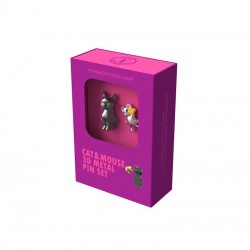 Adorable set de 2 pin's "Chat et souris" de la marque Metalmorphose, connue pour ses créations originales et de qualité en métal.