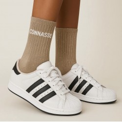 Affirme ton style avec humour grâce aux chaussettes à paillettes WOOM "Connasse" !