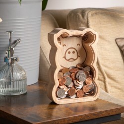 La tirelire cochon en bois Kikkerland revisite le grand classique avec un design à la fois moderne et ludique. Grâce à sa façade transparente, vous pouvez suivre l’évolution de vos économies en un coup d’œil, ce qui rend l’épargne encore plus motivante.