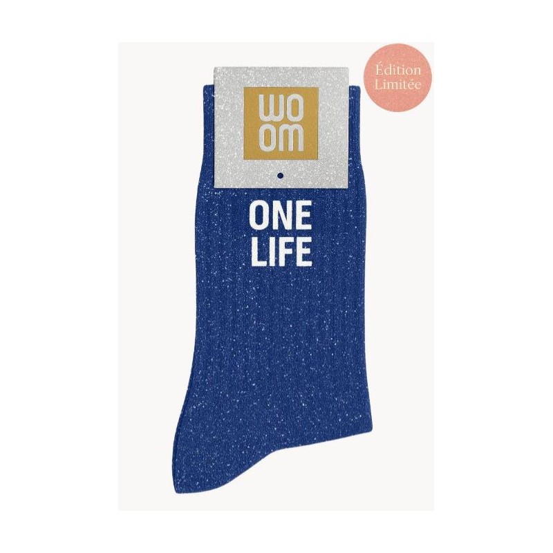 Les Chaussettes à paillettes "One Life" de WOOM sont un rappel lumineux à profiter de chaque instant, avec style et légèreté.