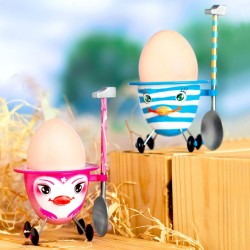 Ce coquetier original et coloré est conçu pour apporter une touche de fantaisie à votre table. Doté de 4 petites roues et accompagné d'une cuillère et d'un marteau, il permet de casser la coquille de l'oeuf avec amusement avant de le déguster.