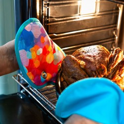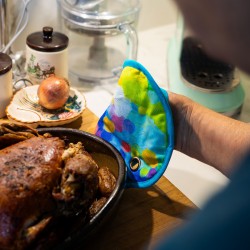 Inspirées de la palette d'un peintre, ces maniques originales transforment la préparation des repas en véritable moment créatif.