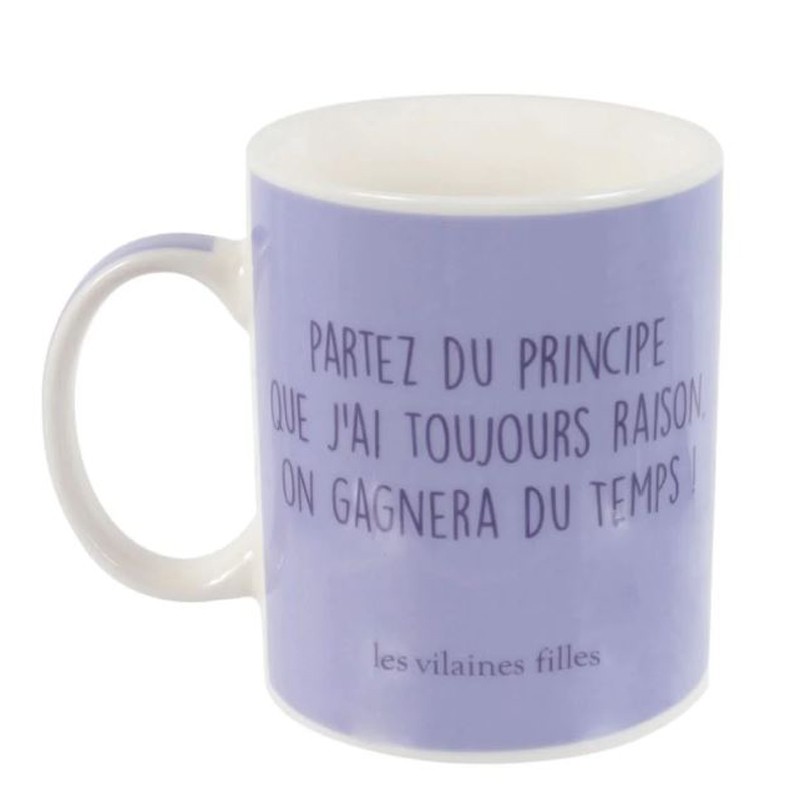 Commencez la journée avec humour grâce au mug violet "Partez du principe que j'ai toujours raison, on gagnera du temps" !