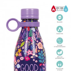 Gourde isotherme Legami 80cl au design floral coloré, idéale pour garder vos boissons chaudes 12h et froides 24h.