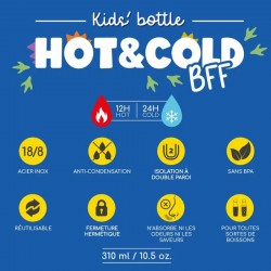 Offrez à votre enfant une gourde aussi adorable que résistante ! Grâce à sa double paroi en acier inoxydable, elle gardera vos boissons fraîches jusqu'à 24h et chaudes jusqu'à 12h, pour des goûters toujours parfaits.