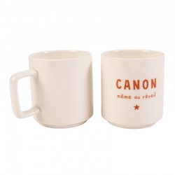 Commencez la journée avec style grâce à ce mug en porcelaine au message plein de confiance : "Canon même au réveil" !
