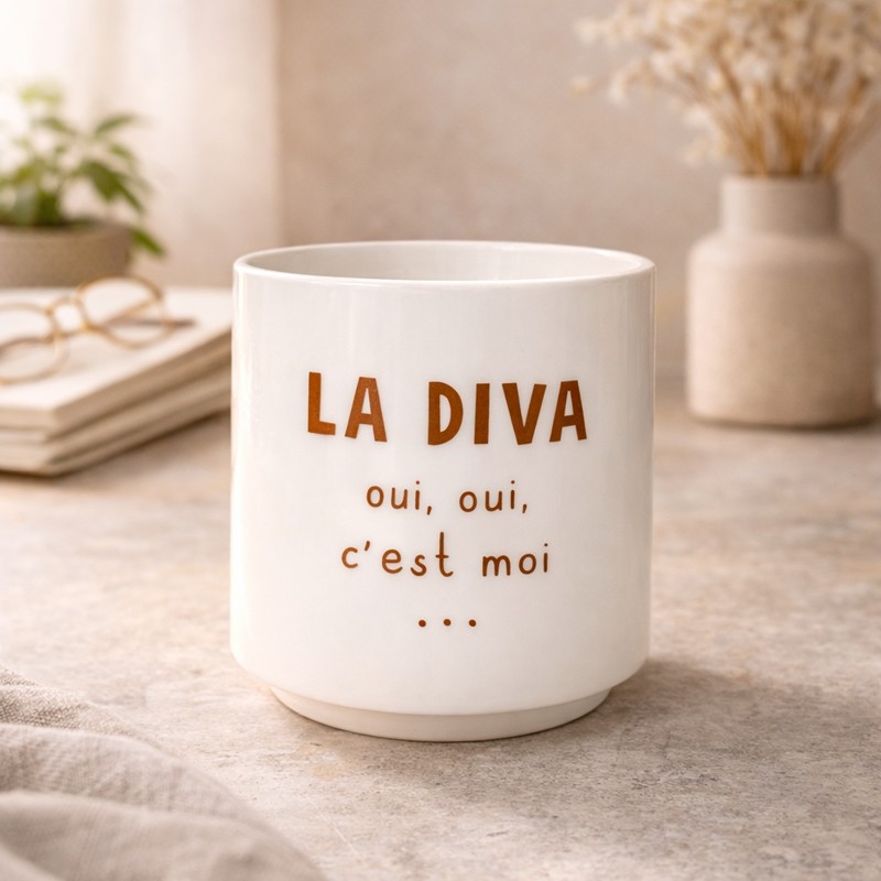 Attention, objet de haute importance : Le mug "La Diva, oui oui c'est moi..." n'est clairement pas fait pour tout le monde... seulement pour celles qui assument !