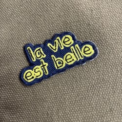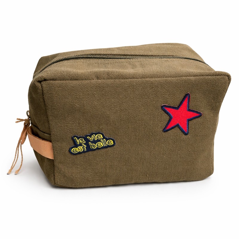 Confectionnée dans une jolie toile couleur kaki, elle se distingue par ses 2 patchs décoratifs (étoile & La vie est belle) qui lui apportent une touche originale et tendance.