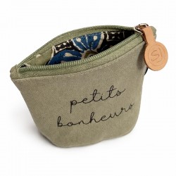 Petit porte-monnaie ovale "Petits bonheurs" signé Sophie Janière, à la fois pratique et élégant, idéal pour glisser monnaie, cartes ou petits essentiels du quotidien.