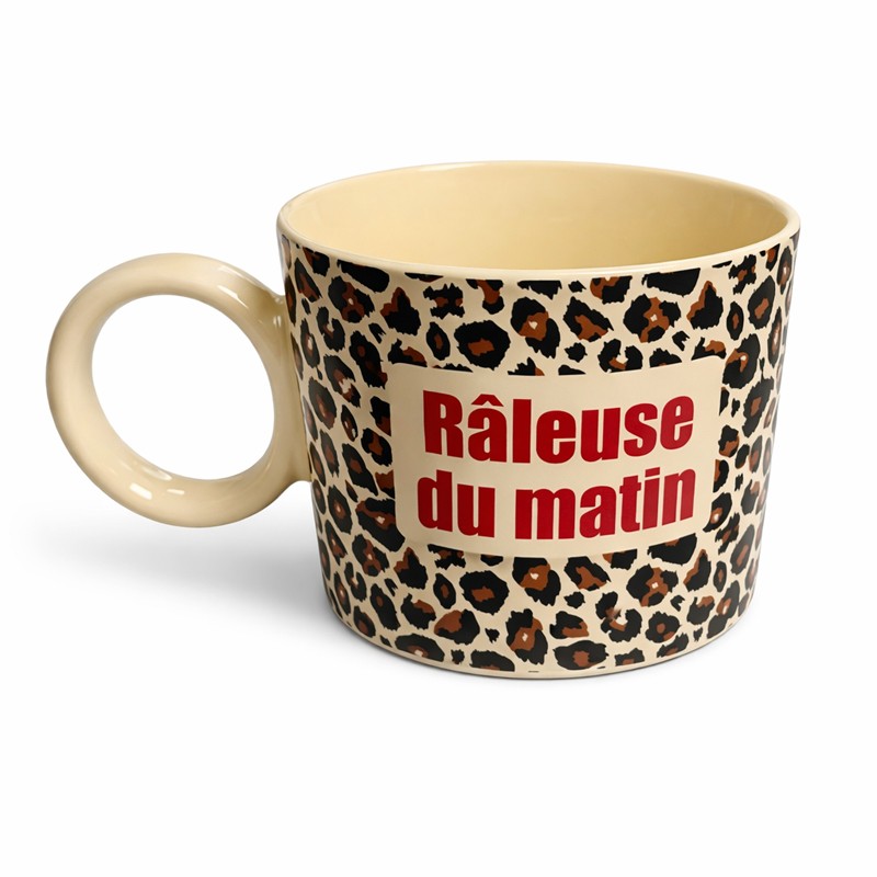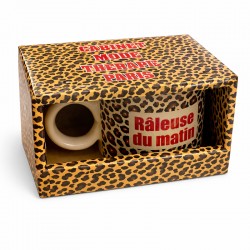 Son inscription "Râleuse du matin" est imprimée sur les deux faces ainsi qu'au fond, pour un effet surprise à chaque gorgée.