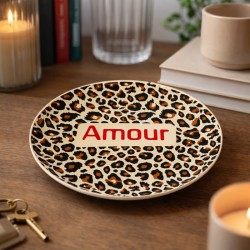 Son motif léopard tendance met parfaitement en valeur l'inscription rouge "Amour", pour une alliance parfaite entre caractère et tendresse.