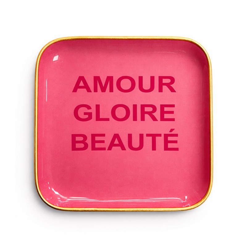 Son message affirmé "Amour, Gloire, Beauté" en fait bien plus qu'un simple accessoire : une véritable déclaration de style à poser chez soi.