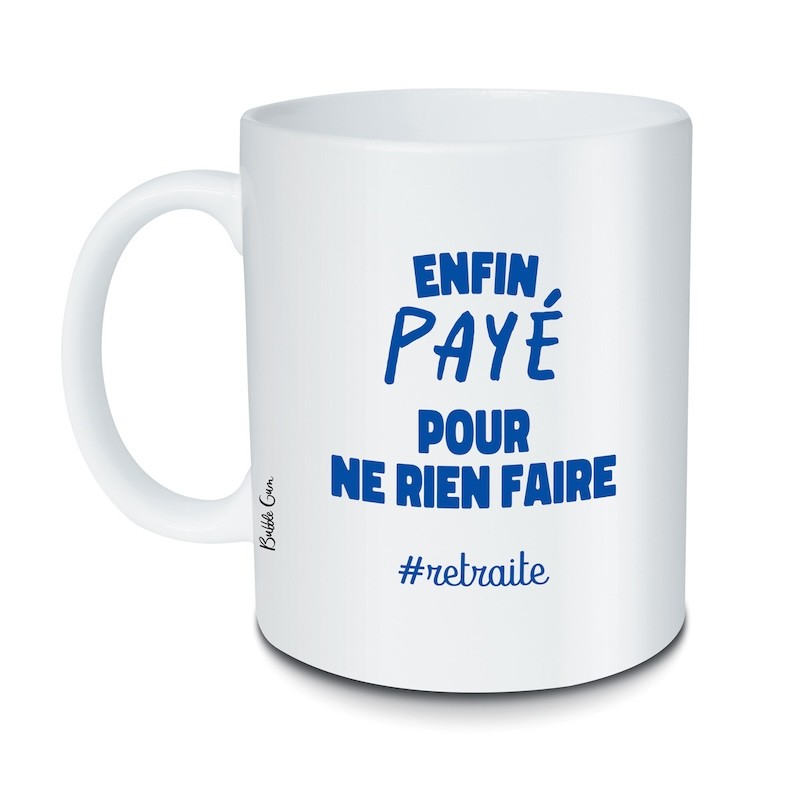 Place à la détente avec ce mug "Enfin payé pour ne rien faire", le cadeau parfait pour célébrer la retraite avec humour !