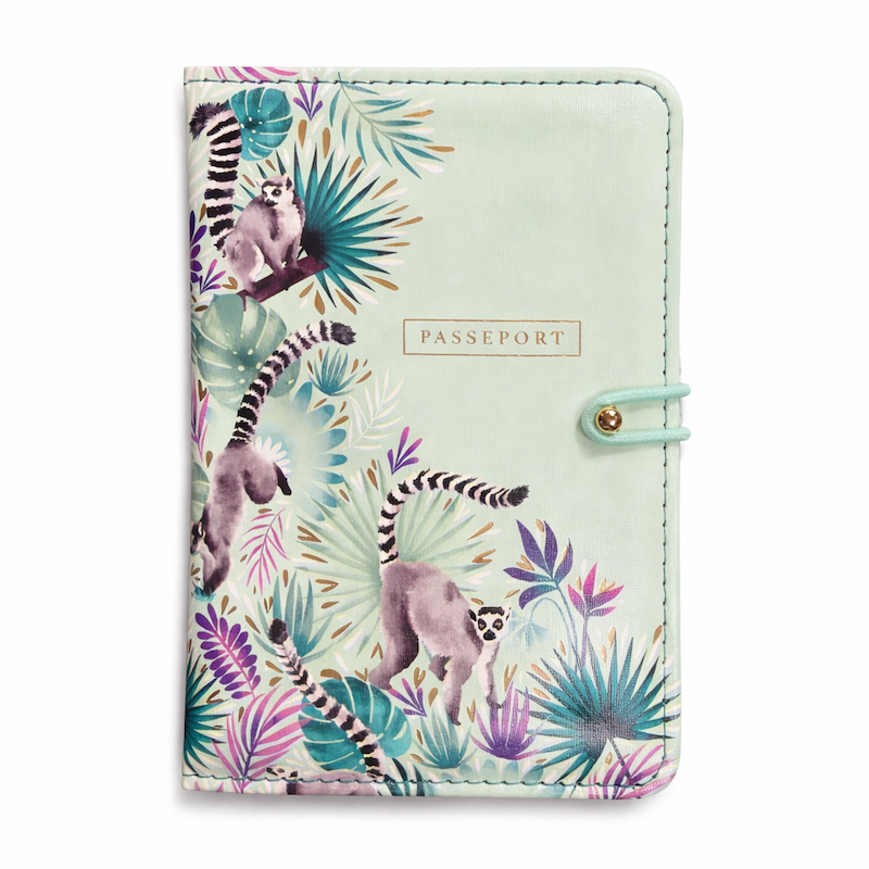 Envie d’évasion et de dépaysement ? Ce protège passeport aux motifs de lémuriens et feuillages tropicaux vous accompagne dans toutes vos aventures.