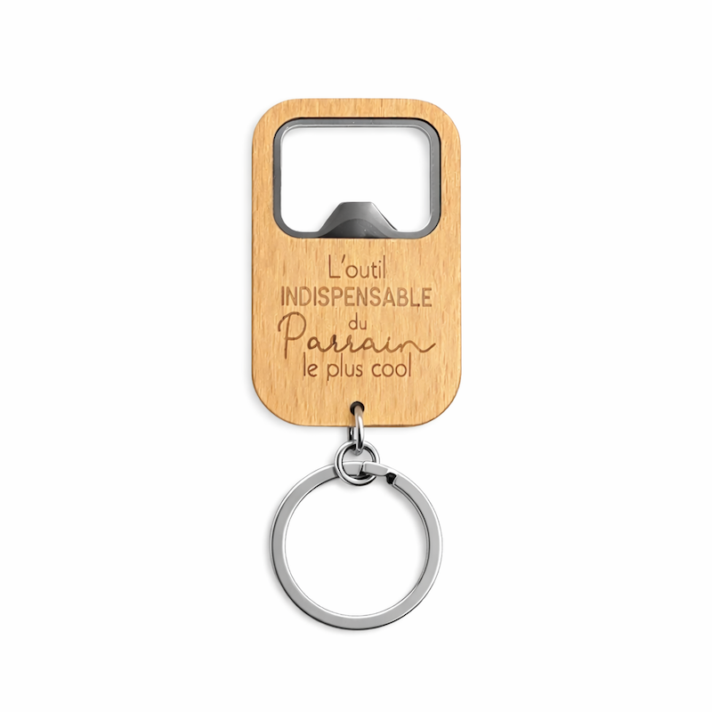 Parce qu’un parrain mérite ce qu’il y a de mieux. Ce porte-clés décapsuleur en bois “l’outil indispensable du parrain le plus cool” est à la fois pratique et plein d’attention.