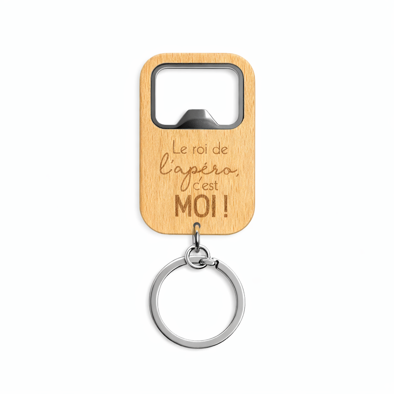 Ce porte-clés décapsuleur en bois “Le roi de l’apéro, c’est moi !” est l’accessoire parfait pour afficher fièrement son statut… avec humour bien sûr.