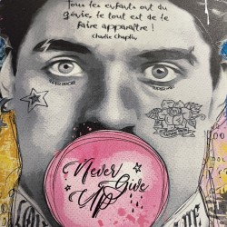 Découvrez ce tableau original de l’artiste Romaric, rendant hommage à l’iconique Charlie Chaplin dans un style urbain et résolument contemporain. Cette œuvre unique revisite ce personnage mythique à travers un univers street art, mêlant couleurs vives, collages graphiques et messages inspirants.