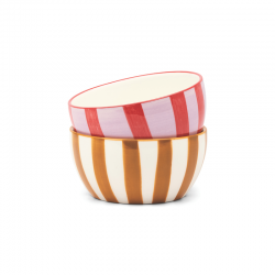 Ajoutez une touche de style à votre table avec ce set de 2 bols en céramique peints à la main, aux motifs rayés élégants et colorés.