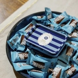 Créez une ambiance chaleureuse avec cette bougie Paddywax de 184 g, présentée dans une boîte en métal au design rayé bleu moderne.