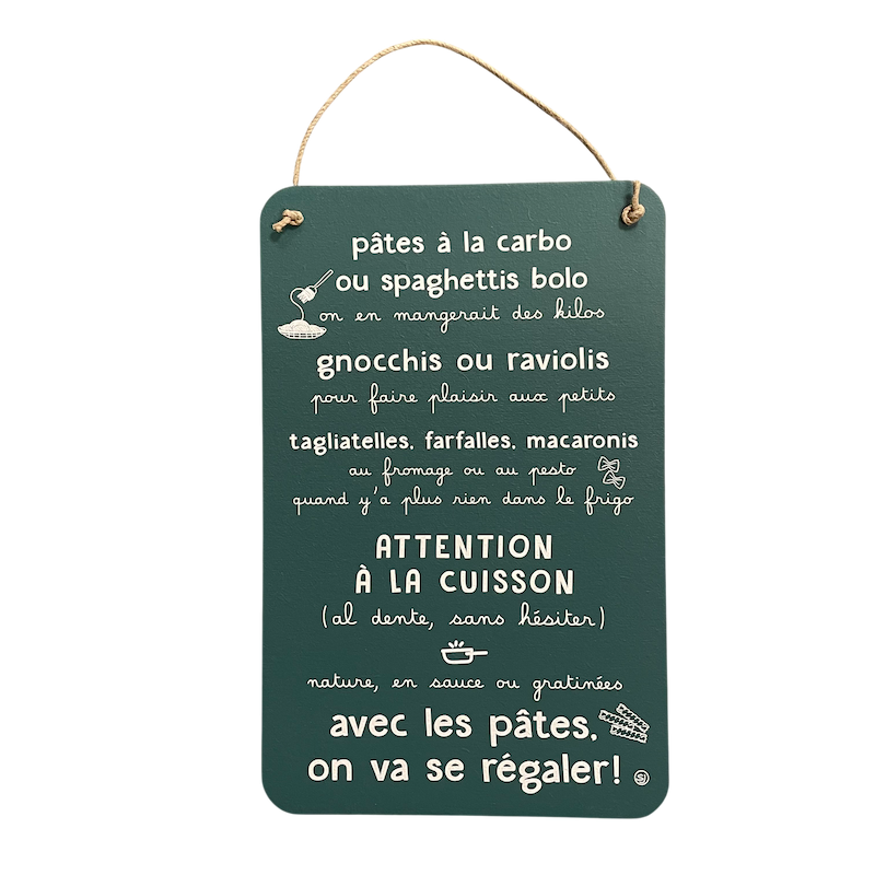 La plaque à suspendre spéciale pâtes célèbre les plaisirs simples et universels de la cuisine. Qu’elles soient à la sauce tomate, au pesto ou juste avec du fromage, les pâtes rassemblent toujours autour de la table.