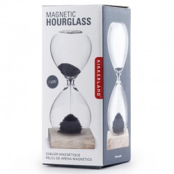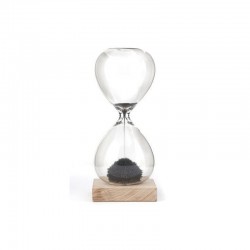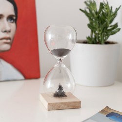 Ce sablier en verre contient de la poudre de fer, son socle en bois contient un aimant. Lorsque vous placerez le sablier sur son socle et que le sable s'écoulera, il formera des stalagmites durant 1 minute.