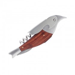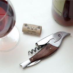 Fabriqué an acier inoxydable et en bois de rose, ce joli tire-bouchon en forme d'oiseau est multifonction : tire-bouchon, décapsuleur, petit couteau.